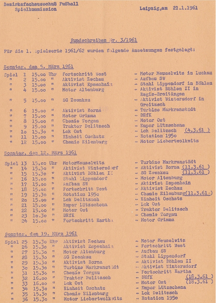- die Spiele Vorwärts II gegen Roßwein und Gohlis für beide als gewonnen gewertet, Einsatz eines unberechtigten Spielers