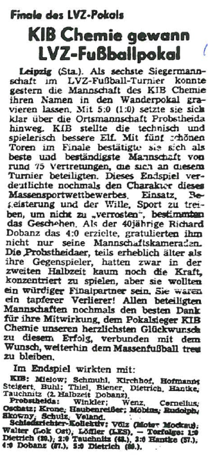 - Endspiel im Bezirkspokal "Junge Welt" Junioren: SC Lok Leipzig - SC Rotation Leipzig 2:1 (0:1) vor 1.500 Zuschauern