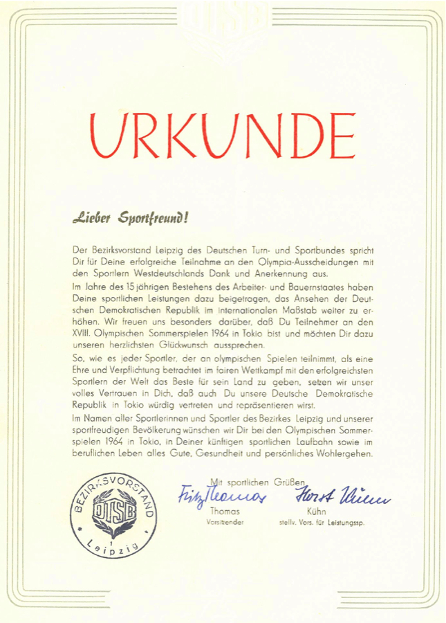 - Lehrgangsbescheinigung und Ausweis der Spartakiade