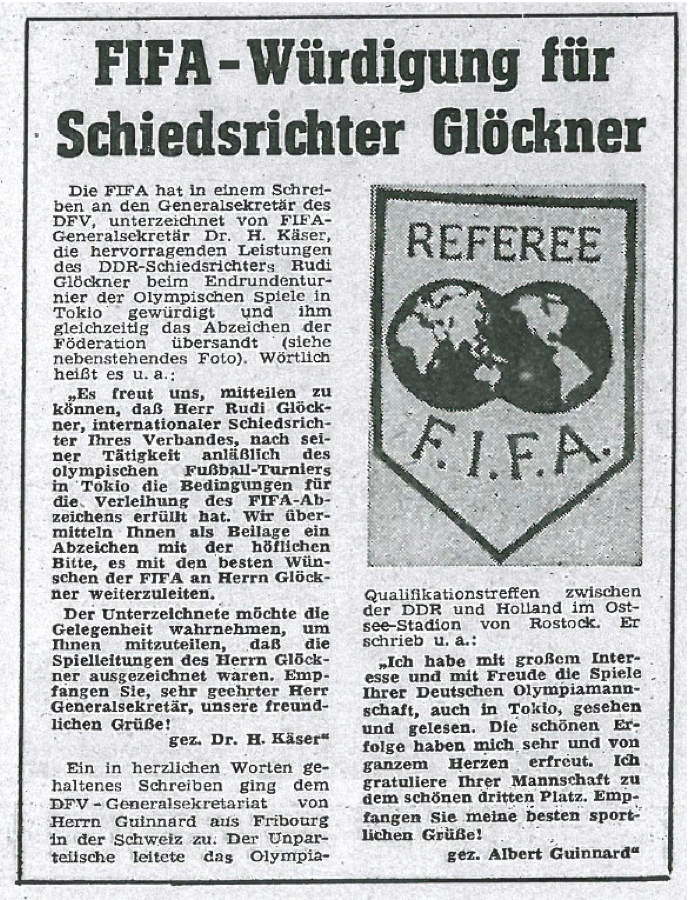 - Günter Männig (Böhlen), Oberliga-SR, erhält das FIFA-Abzeichen